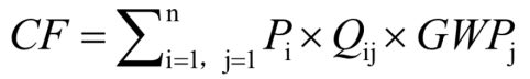產(chǎn)品碳足跡是整個產(chǎn)品生命周期中所有活動的所有材料、能源和廢物乘以其排放因子后再加和,其計算公式如下: